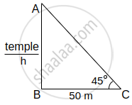 A person is standing at a distance of 50 m from a temple looking at its top. The angle of elevation is 45°. Find the height of the temple.