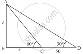 Let AB be the tower of height h. And person makes an angle of elevation of the top of a tower is 30°, he walks 50 m towards the foot of tower then makes an angle of elevation of 60°