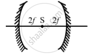 When the point source is at the centre of curvature of the mirrors, i.e, at a distance of '2f' from each mirror, the images will be produced at the same point 'S'. Therefore, d = 2f + 2f = 4f