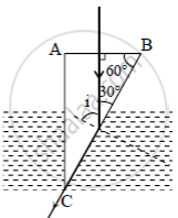 Given the refractive index of prism μg= 1.5 the ray will grazes along the face BC when the angle of incidence i is equal to the critical angle for the glass and liquid interface here i = 60° (from the fig.)and sin i = `mu_"l"/mu_"g"`