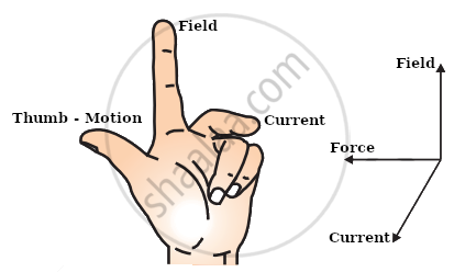 If the first finger points in the direction of magnetic field and the second finger in the direction of current, then the thumb will point in the direction of motion or force.