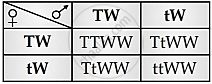 Selfing of TTWw → Gametes TW, Tw