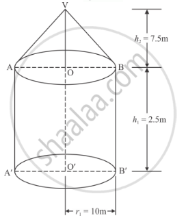 A tent is in the form of a cylinder of diameter 20 m and height 2.5 m, surmounted by a cone of equal base and height 7.5 m. Find the capacity of the tent and the cost of the canvas at Rs 100 per square metre.