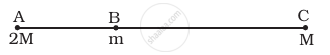 Particles of masses 2M, m and M are respectively at points A, B and C with AB = ½ (BC). m is much-much smaller than M and at time t = 0, they are all at rest (Figure). At subsequent times before any collision takes place ______.