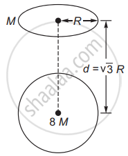 A uniform ring of mass M and radius r is placed directly above a uniform sphere of mass 8M and of same radius R. The centre of the ring is at a distance of d = `sqrt3`R from the centre of the sphere. The gravitational attraction between the sphere and the ring is ______.