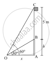 A vertical tower stands on a horizontal plane and is surmounted by a flagstaff of height 5 m. From a point on the ground the angles of elevation of the top and bottom of the flagstaff are 60° and 30° respectively. Find the height of the tower and the distance of the point from the tower. (take\[\sqrt{3}\]= 1.732)