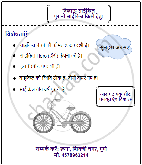 आप रूपेंद्र/रूपा हैं। आप अपनी पुरानी साइकिल बेचना चाहते हैं। उससे संबंधित जानकारी देते हुए एक आकर्षक विज्ञापन लगभग 40 शब्दों में तैयार कीजिए।