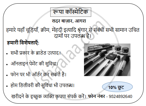 आपके पिता शृंगार वस्तुओं के विक्रेता हैं। कोरोना माहमारी के कारण उनके कारोबार में मंदी आ गई। उनकी दुकान में बिक्री बढ़ाने के लिए लगभग 50 शब्दों में एक विज्ञापन तैयार कीजिए।
