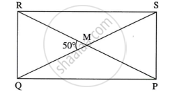 आयत PQRS के विकर्ण परस्पर बिंदु M पर प्रतिच्छेदित करते हैं। यदि `angle`QMR = 50° तो `angle`MPS का माप ज्ञात कीजिए।