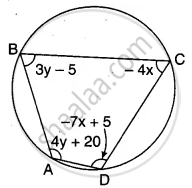 अतः दिए चक्रीय चतुर्भुज के अभीष्ट कोण हैं ∠A = 120°, ∠B = 70°, ∠C = 60° एवं ∠D = 110°.