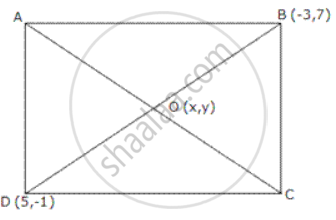 O(x,y) = `((5 - 3)/2 , (-1 + 7)/2)` = (1,3)
