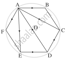 ABCDEF is a regular hexagon. Show that `bar"AB" + bar"AC" + bar"AD" + bar"AE" + bar"AF" = 6bar"AO"`, where O is the centre of the hexagon.