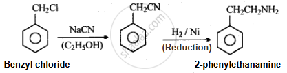 \[\ce{C6H5CH2Br->[alco.][KCN]A ->[Na/ethanol]B.}\]
