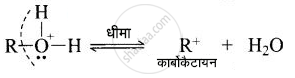 \ce{R - \underset{\bullet\bullet}{\overset{\bullet\bullet}{O}} - H + HCl ⇌[{तीव्र}] R - \underset{\bullet\bullet}{O}^+ - H + Cl-}