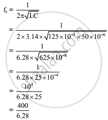 An A.C. circuit consists of inductor of inductance 125 mH connected in parallel with a capacitor of capacity 50 μF. Determine the resonant frequency.