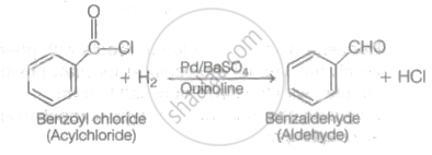 An acylchloride is hydrogenated over catalyst palladium on barium sulphate to form an aldehyde. This reaction is called as rosenmund reduction.