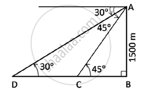 An aeroplane at an altitude of 1500 metres, finds that two ships are sailing towards it in the same direction. The angles of depression as observed from the aeroplane are 45° and 30° respectively. Find the distance between the two ships