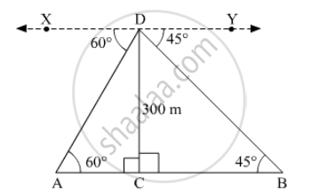 An aeroplane is flying at a height of 300 m above the ground. Flying at this height, the angles of depression from the aeroplane of two points on both banks of a river in opposite directions are 45° and 60° respectively. Find the width of the river. [Use `sqrt3` = 1⋅732]