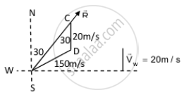 Speed of wind due north, vw = 20 m/s