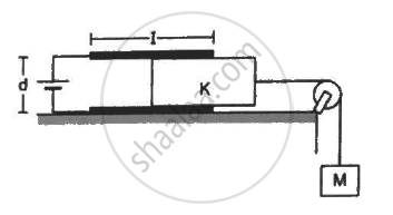 Consider the situation shown in figure (31-E29). The width of each plate is b. The capacitor plates are rigidly clamped in the laboratory and connected to a battery of emf ε. All surfaces are frictionless. Calculate the value of M for which the dielectric slab will stay in equilibrium.