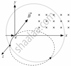 An electron moves along +x direction. It enters into a region of uniform magnetic field `vec B` directed along −z direction as shown in fig. Draw the shape of the trajectory followed by the electron after entering the field.