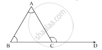 n the ΔABC, CD is the ray extended from the vertex C of ΔABC. It is given that the exterior angle of the triangle is 100° and two of the interior opposite angles are equal.