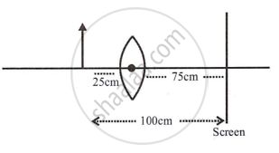 An illuminated object lies at a distance 1.0 m from a screen. A convex lens is used to form the image of the object on a screen placed at a distance of 75 cm from the lens. Find: