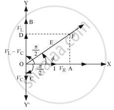 - Let the maximum voltage across the capacitor be Vc = ImXc and that lags behind the current by `pi/2`, it is represented by OC in the phasor diagram.