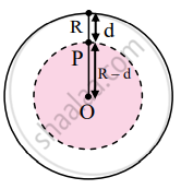 ∴ g = `("G" xx 4/3 pi"R"^3rho)/"R"^2 = 4/3pi"R"rho"G"` ....(1) - Consider a body at a point P at the depth d below the surface of the Earth as shown in the figure.