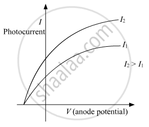 Plot a graph of photocurrent versus anode potential for radiation of frequency ν and intensities I1 and I2 (I1 < I2).
