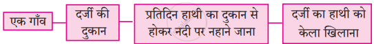 | गॉंव में मेला देखने वालों की भीड़ | → | सड़क पर प्रवेश द्वार के बीचोंबीच बड़ा-सा पत्थर | → | पत्थर से टकराकर छोटे-बड़ों का गिरना-पड़ना। | → | बहुत देर से लड़के का देखना |