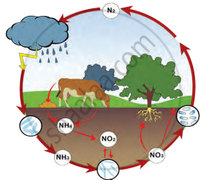- वनस्पतियाँ नाइट्राइट्स तथा नाइट्रेट्स् के स्वरूप में मिट्टी में से नाइट्रोजन अवशोषित करती हैं। उनसे वनस्पतियाँ प्रोटीन तथा उनके जैसे नाइट्रोजनयुक्त यौगिक तैयार करती हैं।