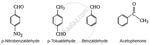 Benzaldehyde, p-Tolualdehyde, p-Nitrobenzaldehyde, Acetophenone.