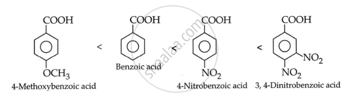 Benzoic acid, 4-Nitrobenzoic acid, 3, 4-Dinitrobenzoic acid, 4-Methoxybenzoic acid (acid strength)