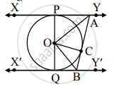 O केंद्र असलेल्या वर्तुळाचा रेख PQ हा व्यास आहे. बिंदू C मधून काढलेली स्पर्शिका वर्तुळास बिंदू P आणि Q बिंदूंतून काढलेल्या स्पर्शिकांना अनुक्रमे A आणि B बिंदूत छेदतात, तर सिद्ध करा, की ∠AOB = 90° - Mathematics 2 - Geometry [गणित २ - भूमिती]