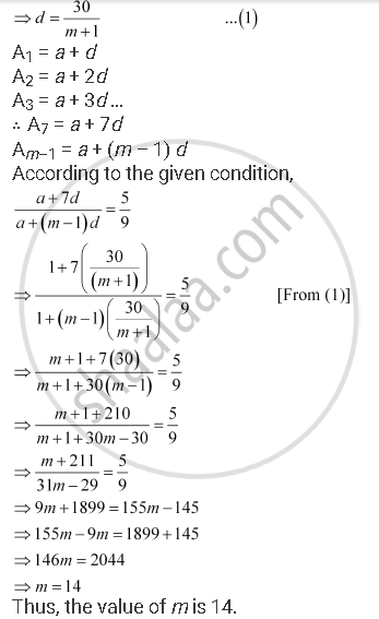 Between 1 and 31, m numbers have been inserted in such a way that the resulting sequence is an A.P. and the ratio of 7th and (m – 1)th numbers is 5:9. Find the value of m.