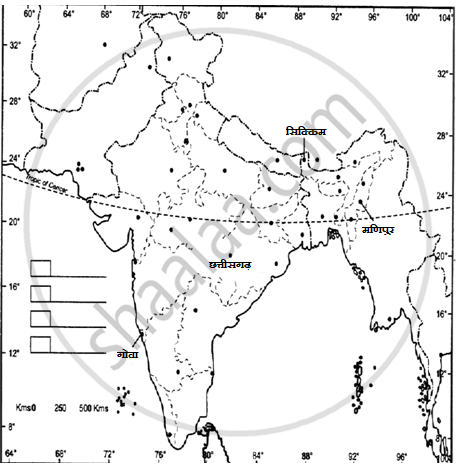 भारत के राजनीतिक मानचित्र की एक खाली रूपरेखा पर निम्नलिखित राज्यों का पता लगाएँ: