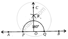 - Draw an arc of 180° which meets the ray `vec(OA)` at P and ray `vec(OB)` at Q.