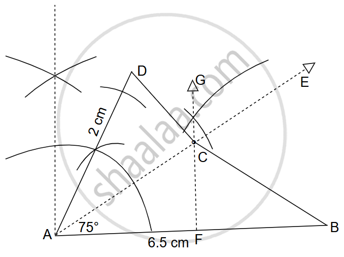 By using ruler and compass only, construct a quadrilateral ABCD in which AB = 6.5 cm, AD = 2 cm and ∠DAB = 75°. C is equidistant from the sides AB and AD, also C is equidistant from the points A and B.