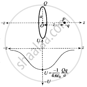 ⇒ `U = - 1/(4piε_0) (Qq)/sqrt(z^2 + a^2) = 1/(4piε_0) (-Qq)/sqrt(1 + (z/a)^2`