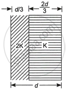 Two slabs of dielectric constants 2K and K fill the space between the plates of a parallel plate capacitor of plate area A and plate separation d as shown in the figure. Find an expression for the capacitance of the system.