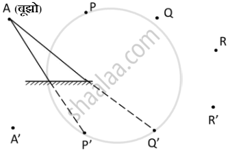 चित्र में दर्शाए अनुसार बूझो एक समतल दर्पण के ठीक सामने पार्श्व से कुछ हटकर एक किनारे A पर खड़ा होता है। क्या वह स्वयं को दर्पण में देख सकता है? क्या वह P, Q तथा R पर स्थित वस्तुओं के प्रतिबिंब भी देख सकता है?