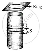 Consider a metal ring kept on top of a fixed solenoid (say on a carboard) (Figure). The centre of the ring coincides with the axis of the solenoid. If the current is suddenly switched on, the metal ring jumps up. Explain