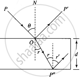Δt = `(OP^")/v = (d/(cos r))/(c/n) = (nd)/(c cos r)`