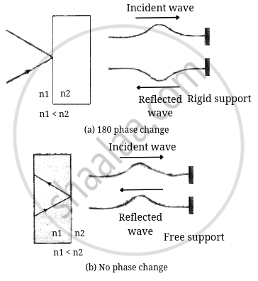 If slab of a glass is placed in air, the wave reflected from the upper surface (from a denser medium) sutlers a sudden phase change of π, while the wave reflected from the lower surface (from a rarer medium) suffers no such phase change.