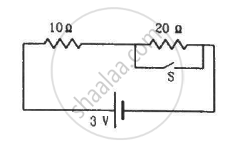 (b) When S is closed, current will flow through the switch that offers the least resistive path. So, the 20 Ω resistance will be ineffective in this case. The effective resistance in this case,