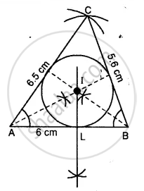 Construct a ∆ ABC such that AB = 6 cm, BC = 5.6 cm and CA = 6.5 cm. Inscribe a circle to this triangle and measure its radius.