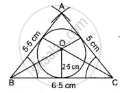 Construct a Δ ABC with BC = 6.5 cm, AB = 5.5 cm, AC = 5 cm. Construct the incircle of the triangle. Measure and record the radius of the incircle.