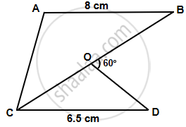 ABCD is the parallelogram with diagonals AC = 8 cm, BD = 6.5 cm and the angle between the diagonals ∠AOB = 60° constructed as above.