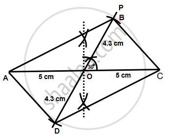 Construct a parallelogram ABCD, when AC = 10 cm, BD = 8.6 cm and ∠BOC = 30°.